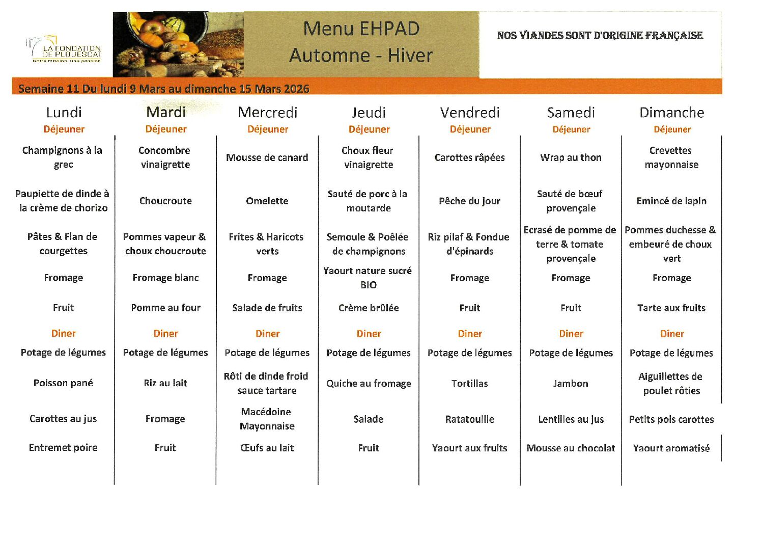 Menu de la semaine
